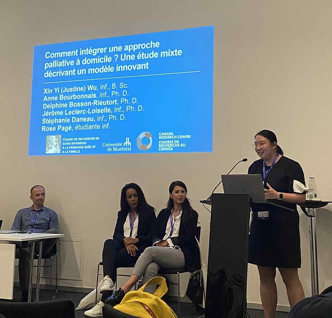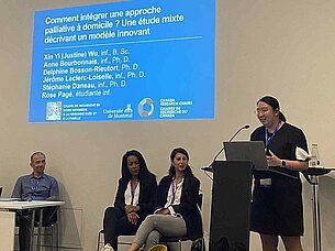 *Wu, XY, Bourbonnais, A., Bosson-Rieutort-D., Leclerc-Loiselle, J., Daneau, S. et *Pagé, R. (2025). Comment intégrer une approche palliative à domicile ? Une étude mixte décrivant un modèle innovant. Communication orale.